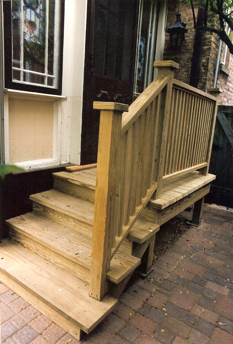 Next Previous Side Entry Porch by blossomcarpentry August 9, 2014 Porches Made of southern pressure-treated pine for durability Level landing for graceful entry Railing and baluster spacing is closer than code requirements for enhanced child safety Related