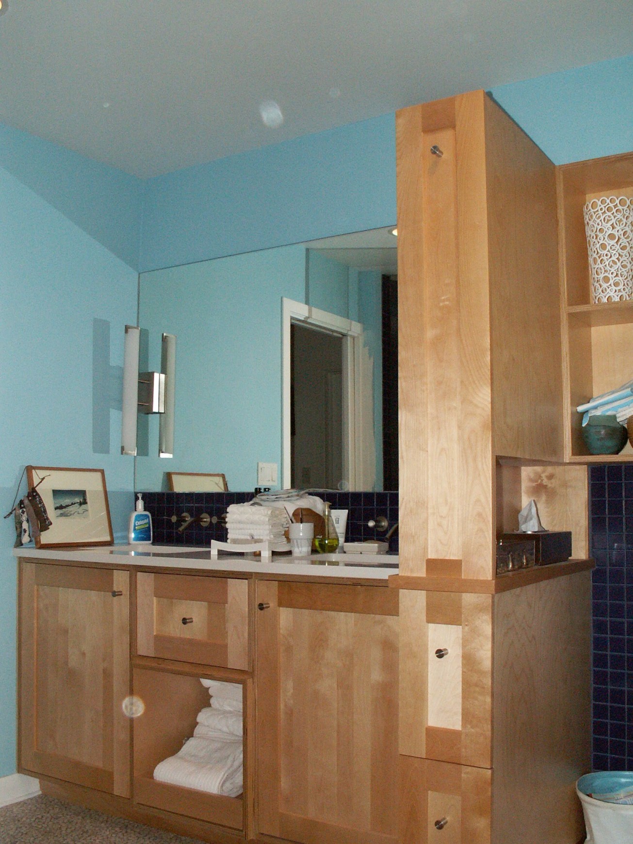 Next Previous Modern Style Bath by blossomcarpentry August 10, 2014 Baths, Cabinetry, featured bath, bathroom, cabinets, maple, remodel Installed stone countertops Birch cabinetry with lacquer finish Shaker-style inset panel doors Related